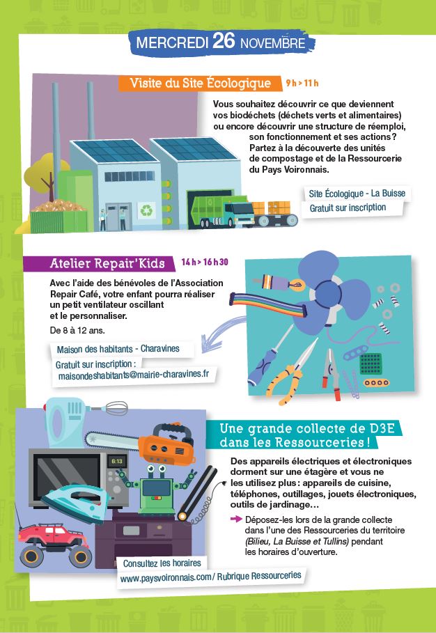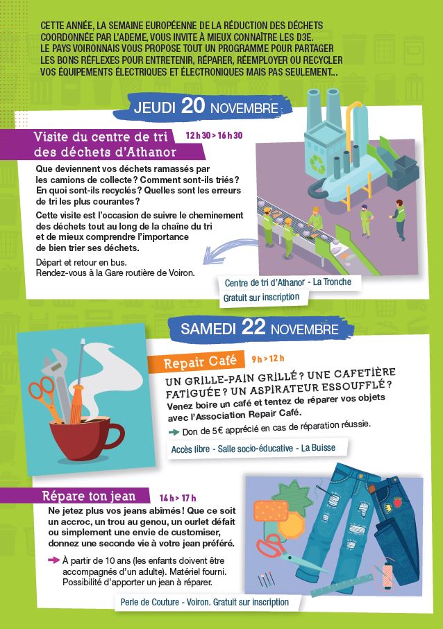 Le Pays Voironnais vous propose tout un programme pour partager les bons réflexes pour entretenir, réparer, réemployer ou recycler vos équipements électriques et électroniques mais pas seulement…