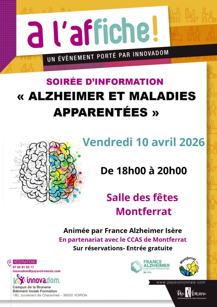 Venez participer à la soirée d’information sur la maladie d’Alzheimer et les maladies apparentées, organisée par le Pays Voironnais en partenariat avec le CCAS de Montferrat et l’association France Alzheimer Isère