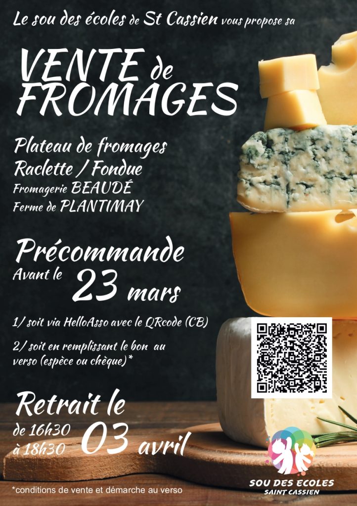 Le Sou des Écoles vous propose une vente de fromages pour financer les activités scolaires des enfants du village.