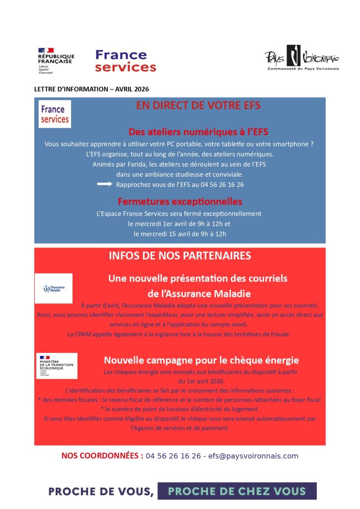 Voici la nouvelle lettre d’information de l’Espace France Services Valdaine.