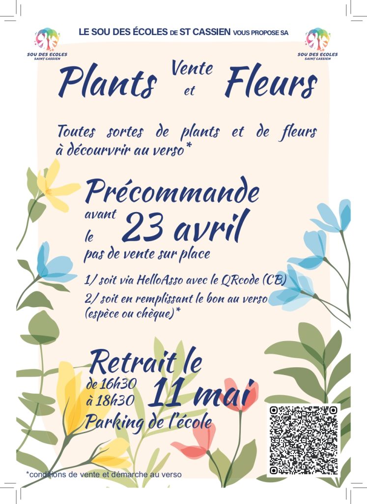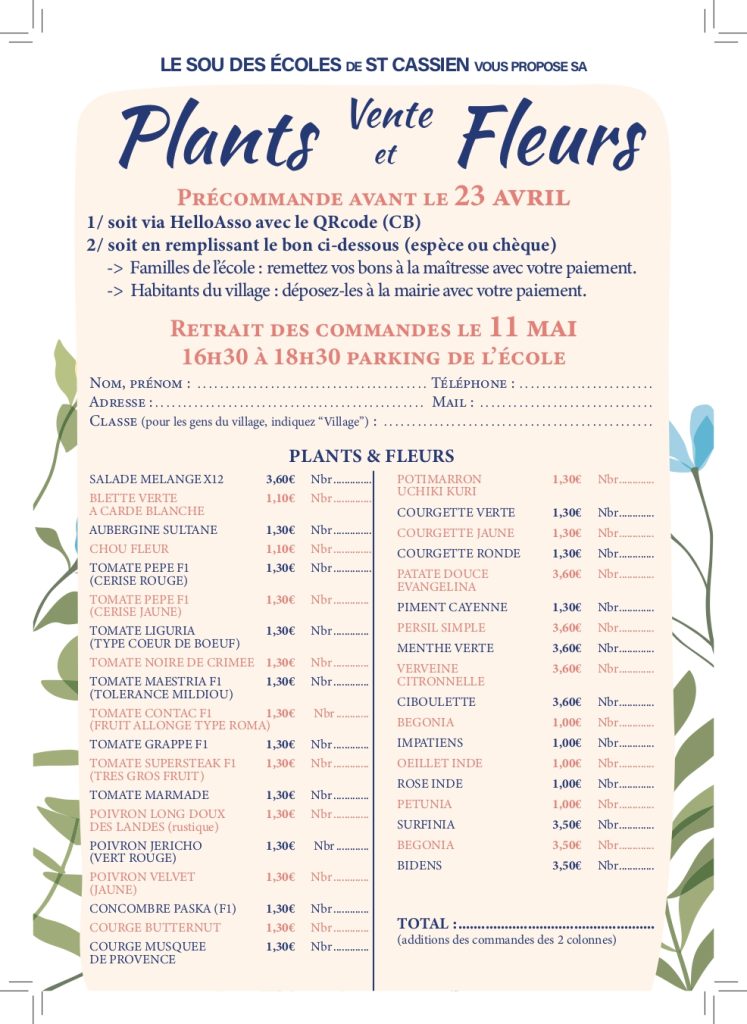 Le Sou des Écoles de Saint-Cassien vous propose une vente de plants et fleurs pour financer les activités scolaires des enfants du village.