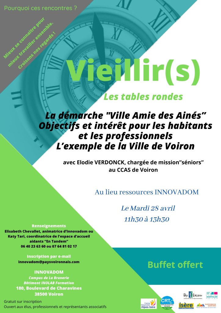 vous invitent à participer à la prochaine table ronde “vieillir(s)” autour d’un buffet,