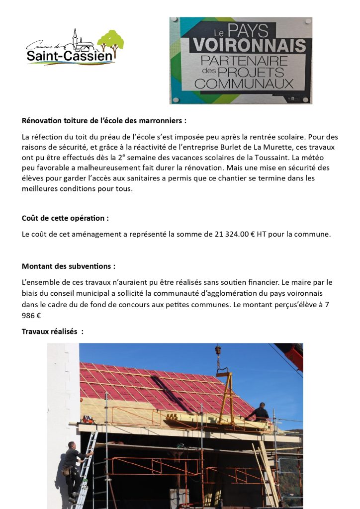 La réfection du toit du préau de l’école s’est imposé après la rentrée scolaire.Les travaux ont été réalisés en toute sécurité par l’entreprise Burlet.